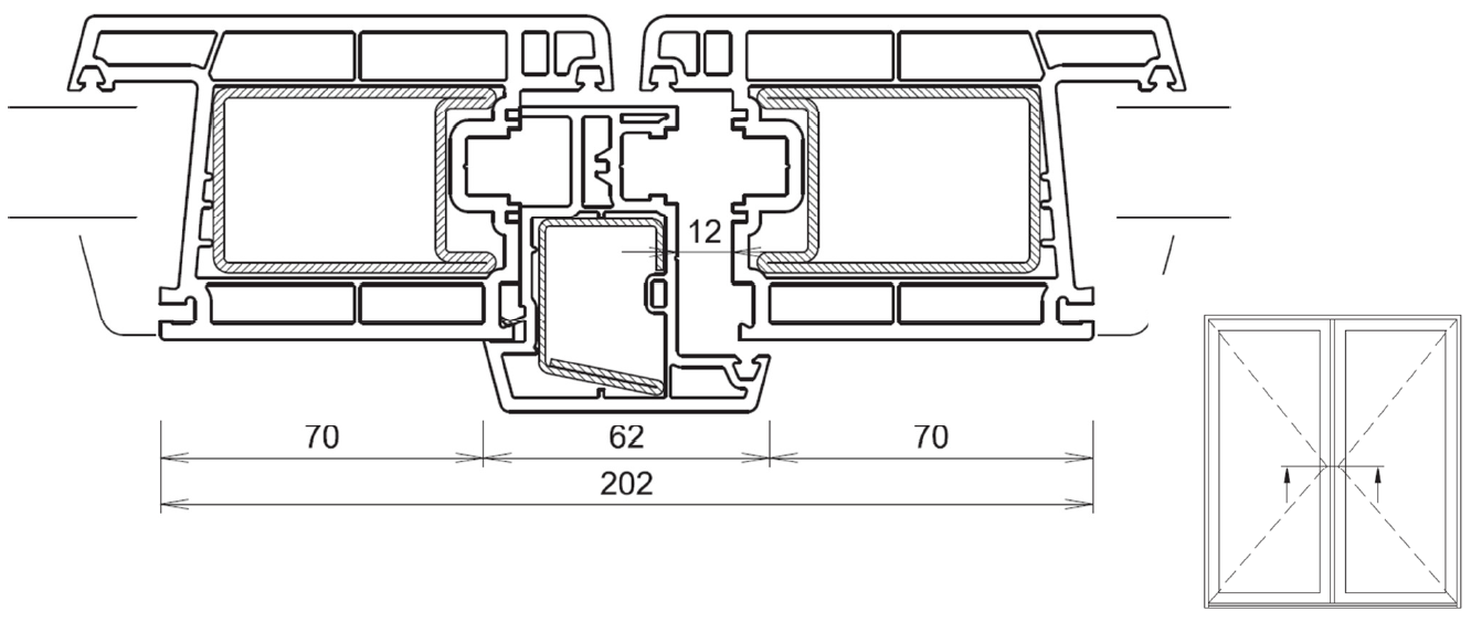 A 2 szárnyú ajtók szélessége már 1200 mm-től elérhető, javasolt maximális szélesség a 2000 mm. A másodszárny minimális szélessége 450 mm.